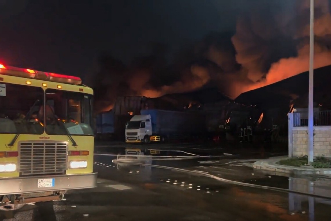 وأظهرت مشاهد للحريق ارتفاع ألسنة اللهب، بينما تحاول قوات الدفاع المدني السيطرة على الحريق.