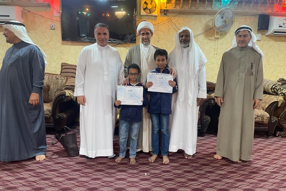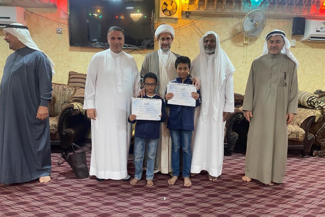 بالمنيرة، المعلم ضياء المشعل، و12 طالبًا من حفظة جزء عم، في حفل حضره الشيخ محسن الموسى أمام الجماعة وإدارة المسجد وأولياء الأمور والطلبة المكرمين.