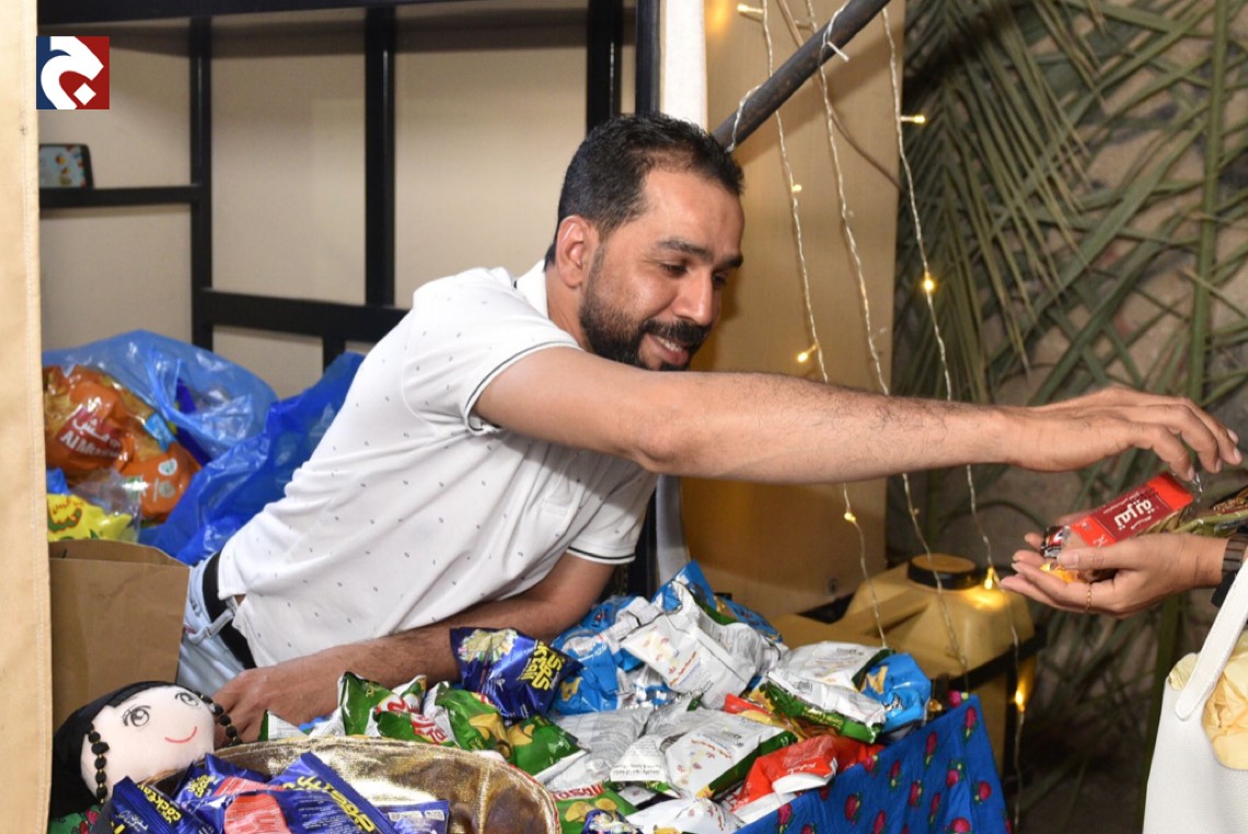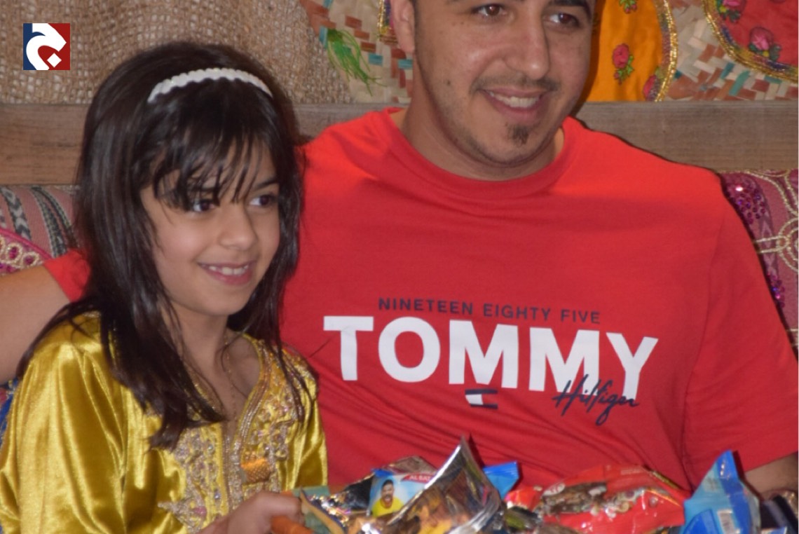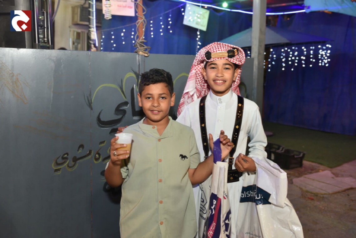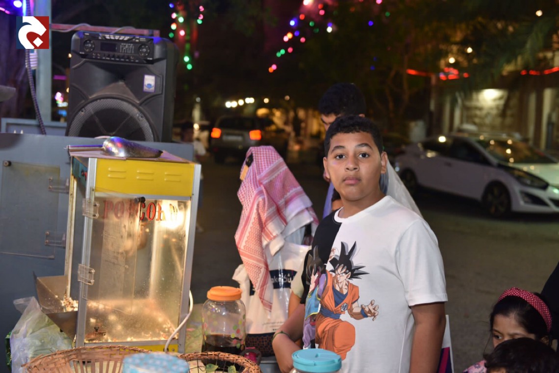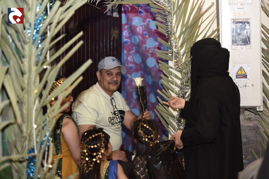 وردد الاطفال حاملين أكياس مزكرشة، وحلويات ملونة، هتافات وأهازيج ب «ناصفة حلاوة.. عطونا الله يعطيكم.. سلم الله أبو عيالكم». فيما حرصت الأمهات على توزيع الحلوى عند أبواب منازلهن.