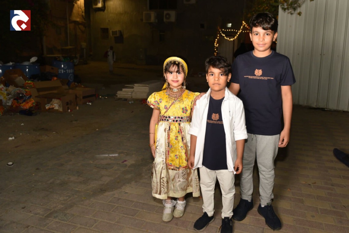 وخرج الآلاف الأطفال فارتدى بعض الأولاد الملابس التراثية كالزي الخليجي، في الوقت الذي لبست فيه البنات والفتيات الجلابيات والبخانق في عرض شعبي للأزياء القديمة، وهم يجوبون الشوارع ويطرقون المنازل.