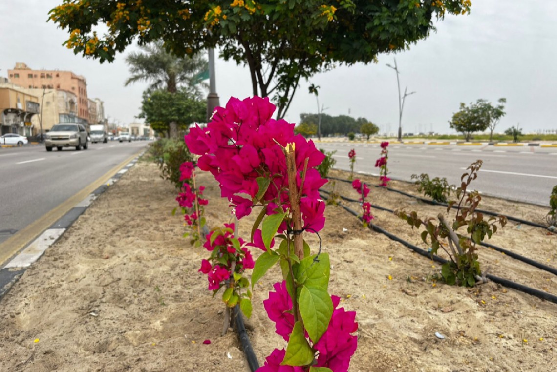 بدأت بلدية محافظة القطيف، المرحلة الأولى من أعمال التجميل والتشجير للجزيرة الوسطية بطريق الخليج العربي بطول 2500 متر مربع.