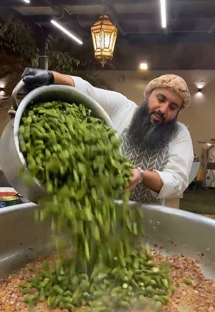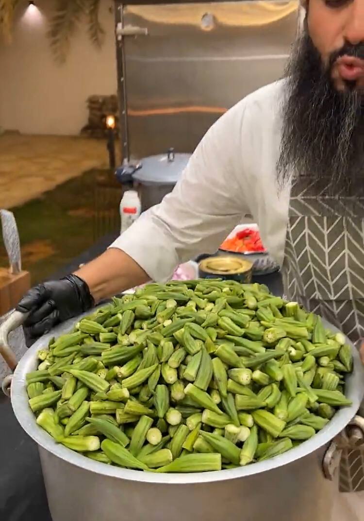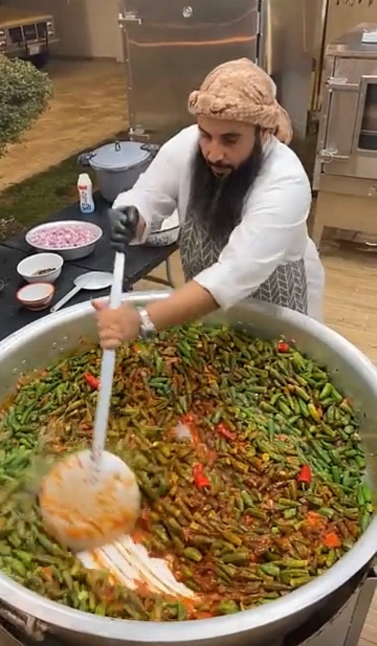 واستخدم قرابة 40 كيلوجرام من البامية و20 كيلوجرام من الأرز.