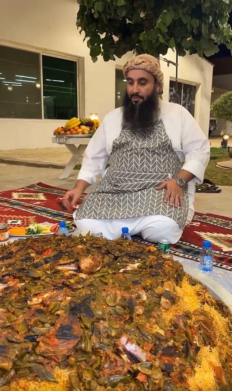 بادر مجموعة من الشباب بإعداد أكبر طبق ”مقلوبة بامية باللحم“ في العاصمة الرياض كوجبة سحور لأول ليالي شهر رمضان.