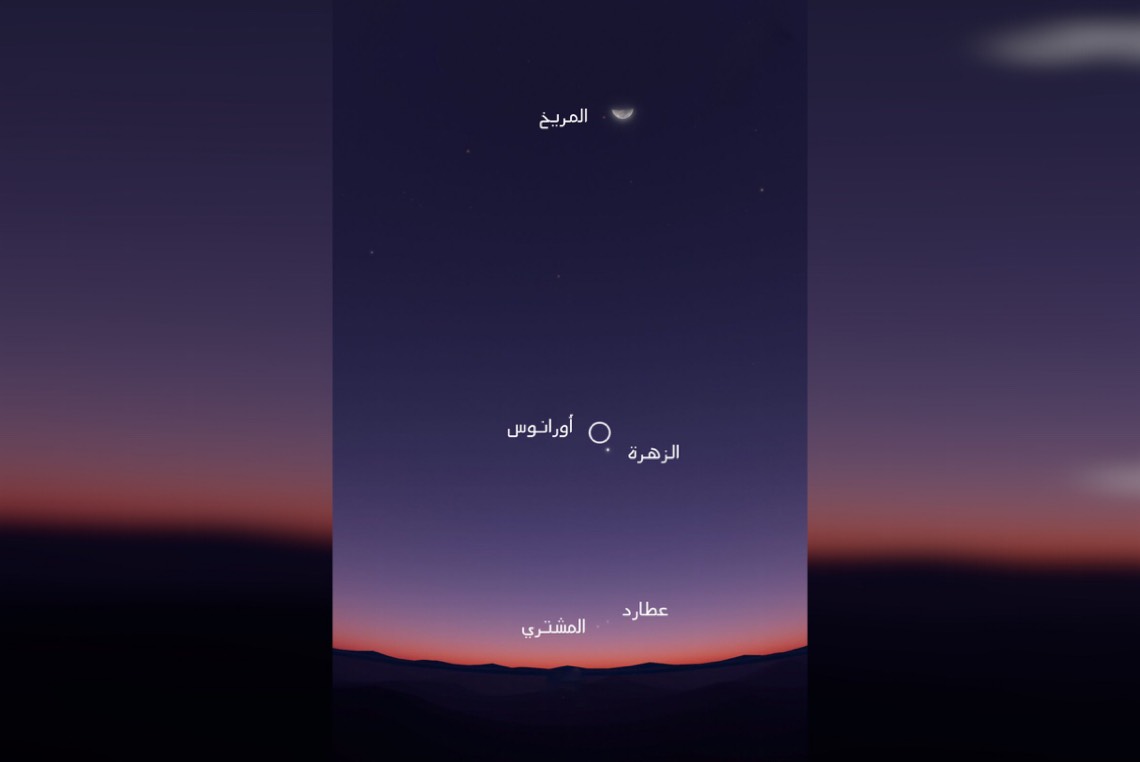 كشف رئيس الجمعية الفلكية بجدة م. ماجد ابوزاهرة أن خمسة كواكب تزين الأفق الغربي في سماء الوطن العربي بعد غروب شمس اليوم الثلاثاء، أربعة منها مرئية بالعين المجردة حيث سيشكل المشتري وعطارد والزهرة وأورانوس والمريخ قوسًا بجانب القمر.