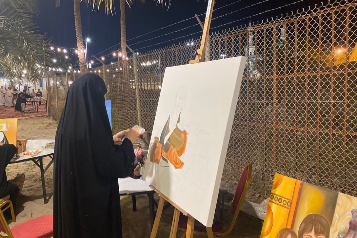 ”فنانات القطيف“ يشاركن بلوحات تراثية في ”بستان قصر تاروت“