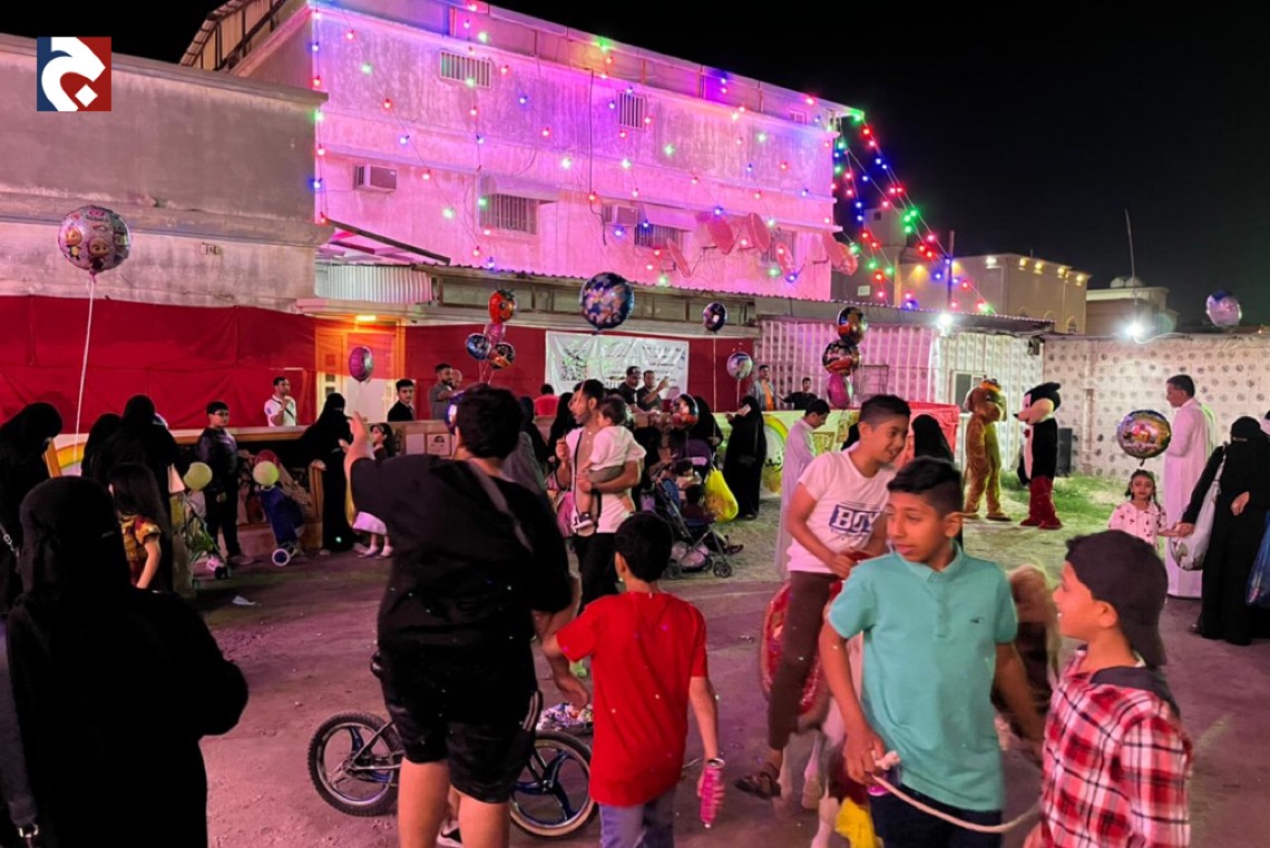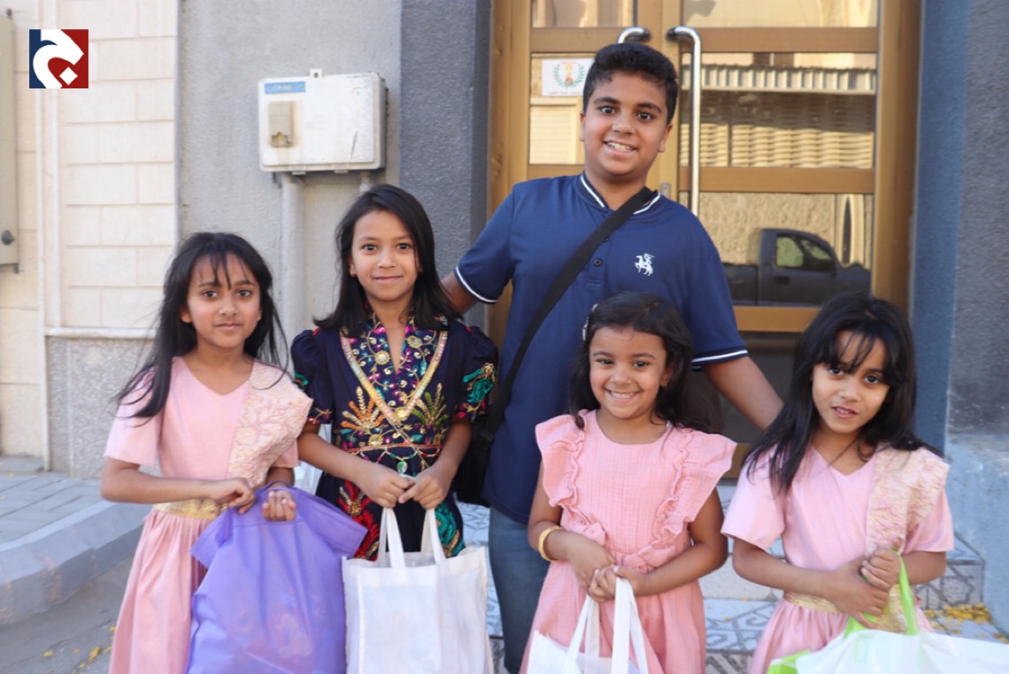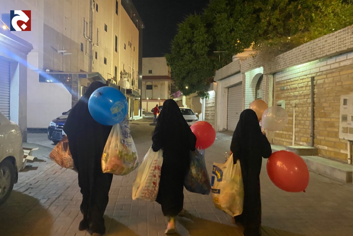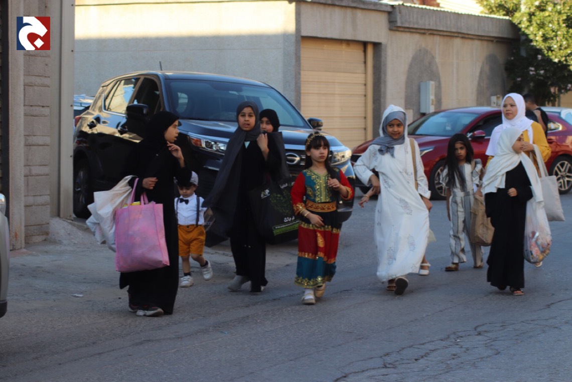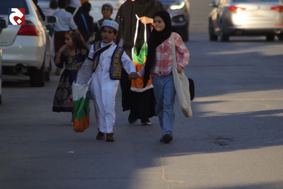 وبملابس البهجة والفرح التي اعتاد الأطفال لبسها من الملابس الشعبية، وبأكياس القماش التي تعانق جيدهم، خرجوا الأولاد والفتيات بكل فرح وهم ينشدون الأناشيد الشعبية فرحًا واحتفالًا بمولد الإمام الحسن الزكي