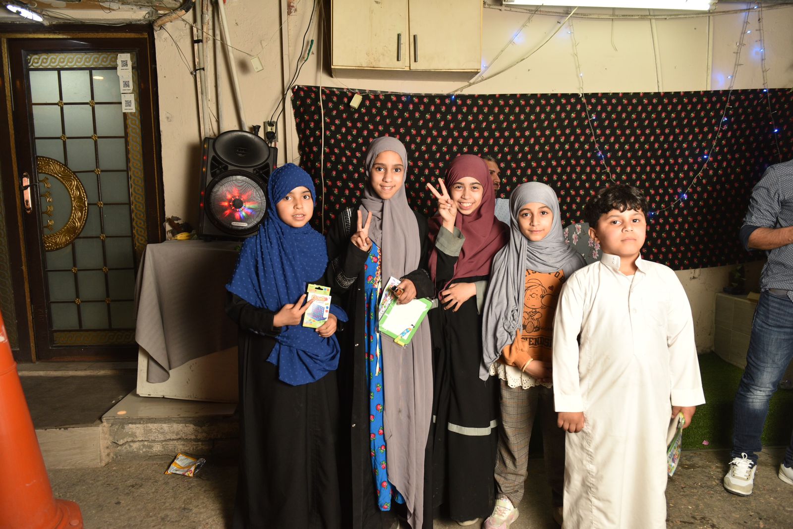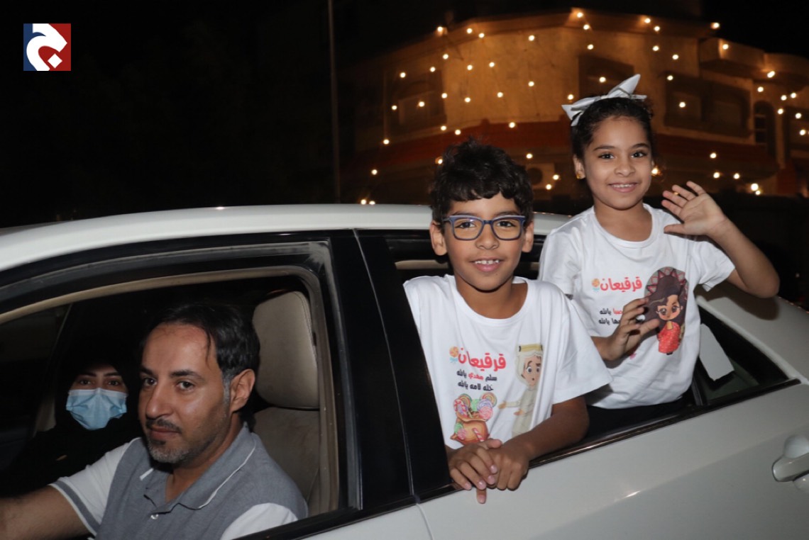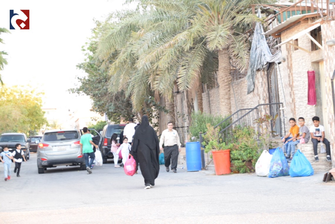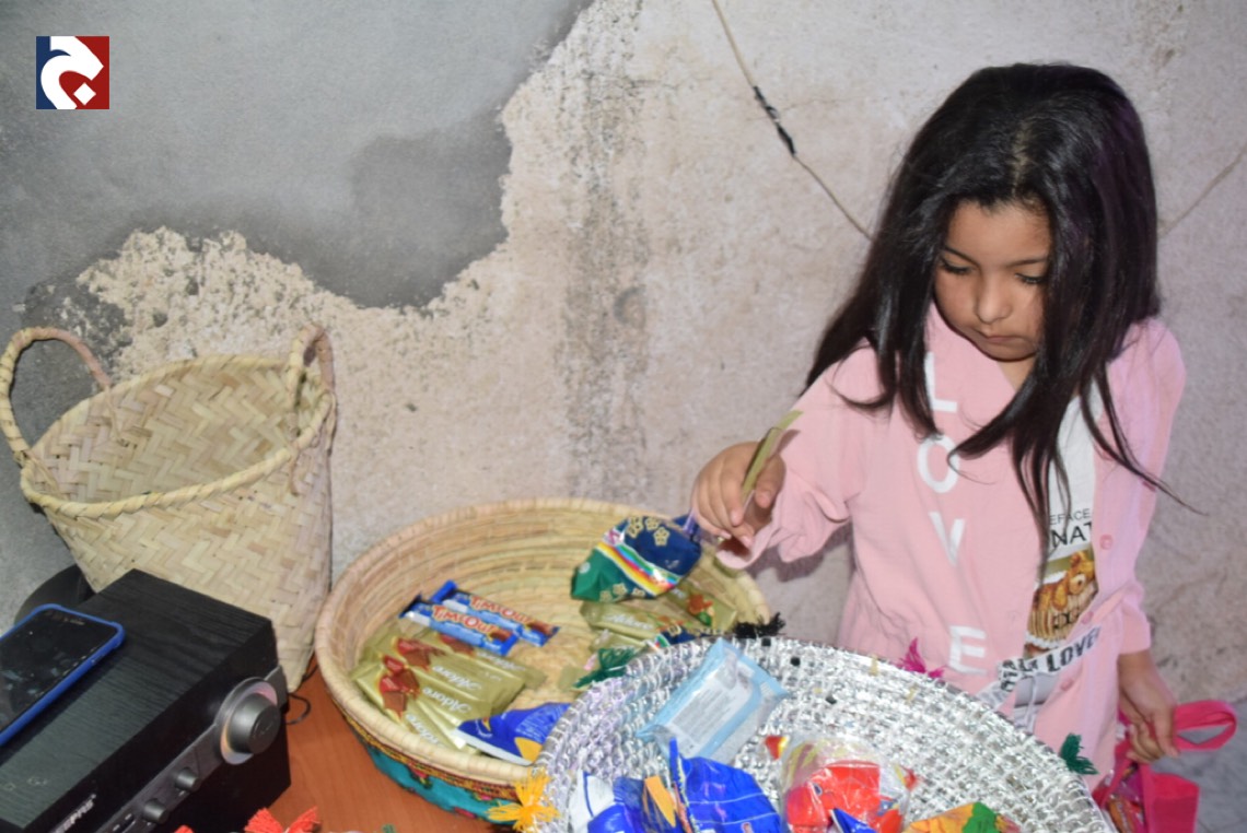 وبملابس البهجة والفرح التي اعتاد الأطفال لبسها من الملابس الشعبية، وبأكياس القماش التي تعانق جيدهم، خرجوا الأولاد والفتيات بكل فرح وهم ينشدون الأناشيد الشعبية فرحًا واحتفالًا بمولد الإمام الحسن الزكي