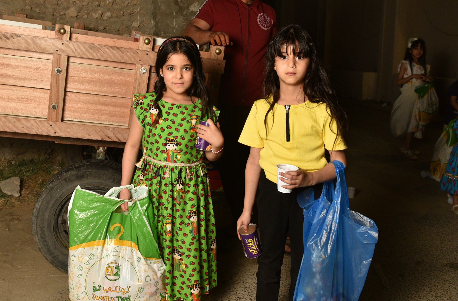 وككل عام يسيرون الأطفال مع أهاليهم لكي يجمعون أنواع «البركة» من حلويات ومكسرات وشيبسات، والكثير من المأكولات والمشروبات المتنوعة.