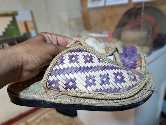 أثار حذاء رجالي دهشة زوار مهرجان بستان قصر تاروت، حيث صُنع من خوص النخيل كما كان يصنعه القدامى في المنطقة.