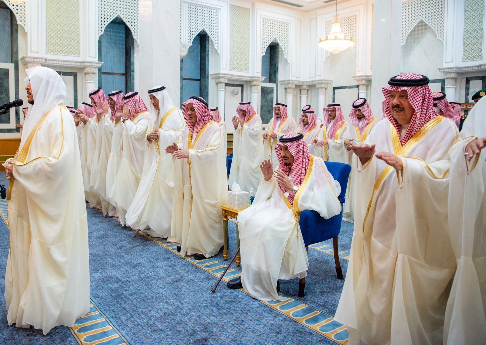 أدى خادم الحرمين الشريفين الملك سلمان بن عبدالعزيز آل سعود، في قصر السلام بجدة، صباح اليوم، صلاة عيد الفطر المبارك.