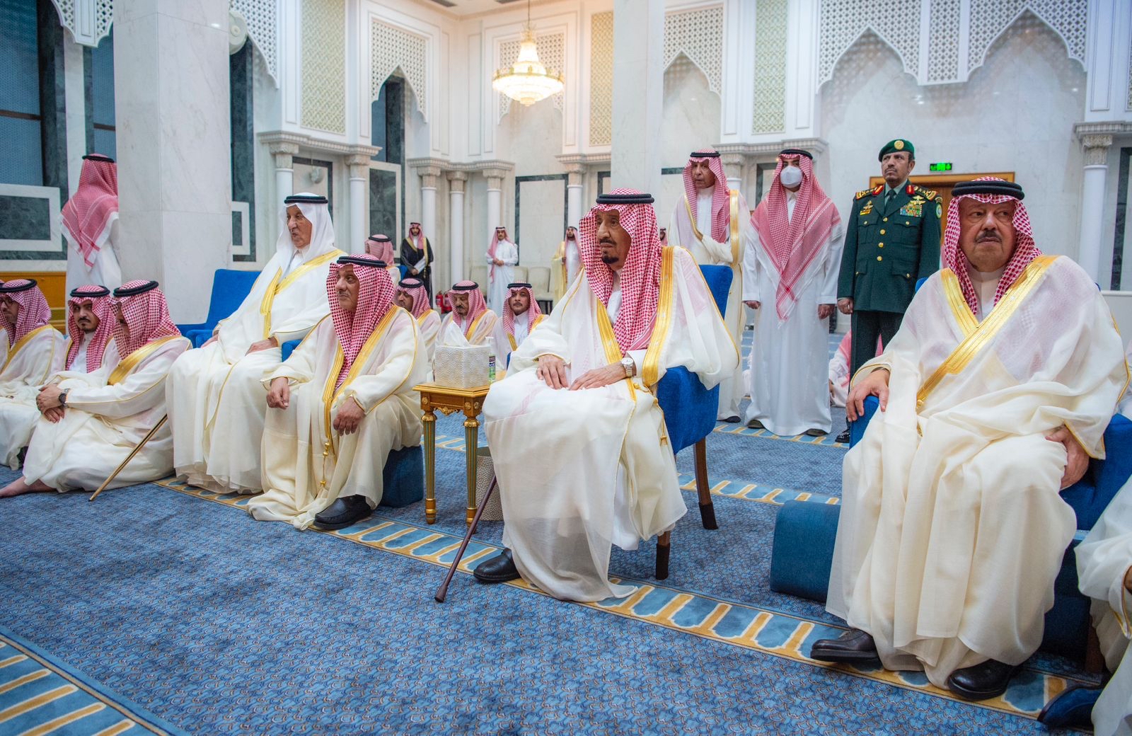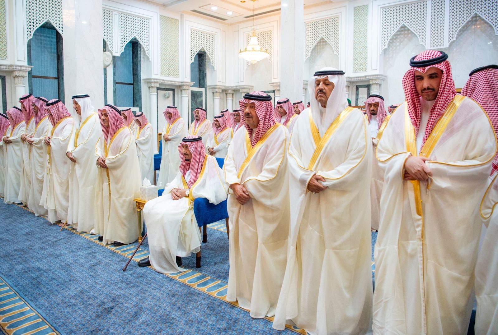 وأدى الصلاة مع خادم الحرمين الشريفين، كل من الأمير خالد بن فهد بن خالد، والأمير منصور بن سعود بن عبدالعزيز، والأمير خالد بن سعد بن فهد، والأمير سطام بن سعود بن عبدالعزيز، الأمير فيصل بن سعود بن محمد، الأمير الدكتور عبدالعزيز بن سطام بن عبدالعزيز مستشار خادم الحرمين الشريفين، الأمير بدر بن سلطان بن عبدالعزيز نائب أمير منطقة مكة المكرمة، الأمير سعود بن عبدالله بن جلوي محافظ جدة، الأمير سعود بن سلمان بن عبدالعزيز، الأمير فيصل بن أحمد بن سلمان بن عبدالعزيز، الأمير عبدالعزيز بن خالد بن سلمان بن عبدالعزيز، وعدد من كبار المسؤولين.
