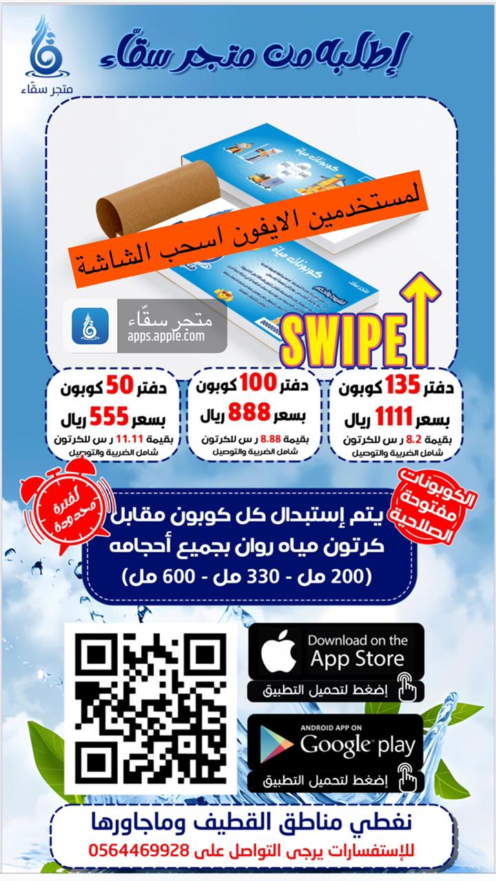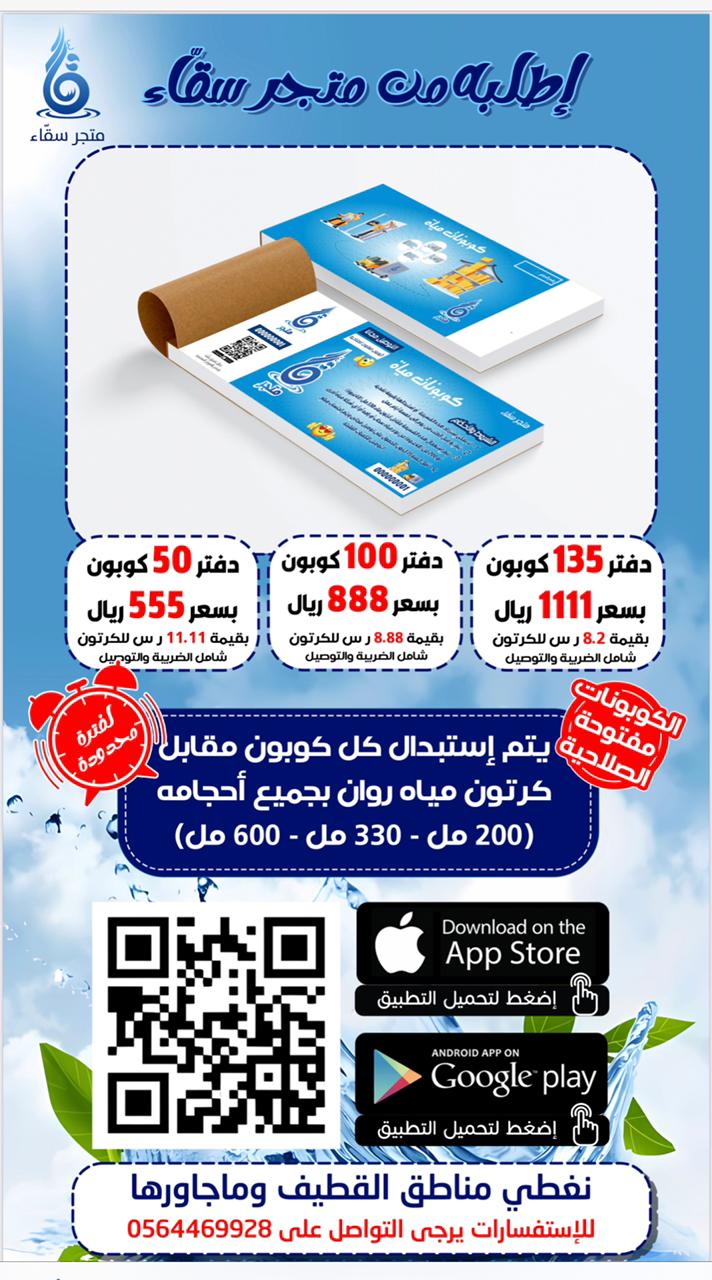 لمعرفة طريقة طلب دفتر إشتراك الكوبونات عبر تطبيق سقّاء شاهد الفيديو :
