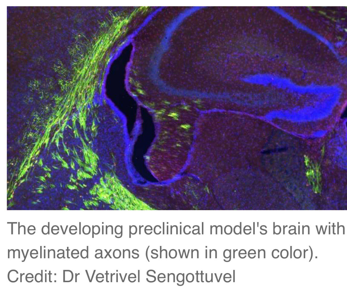 في النماذج preclinical models قبل «https://medicalxpress.com/tags/preclinical+models/» السريرية، أظهر الفريق أن إزالة Mfsd2a من الخلايا السليفة precursor cells التي تنضج mature إلى خلايا منتجة للمايلين myelin-producing cells- والمعروفة باسم الخلايا القليلة oligodendrocytes- في الدماغ أدى إلى نقص المايلين بعد الولادة.
