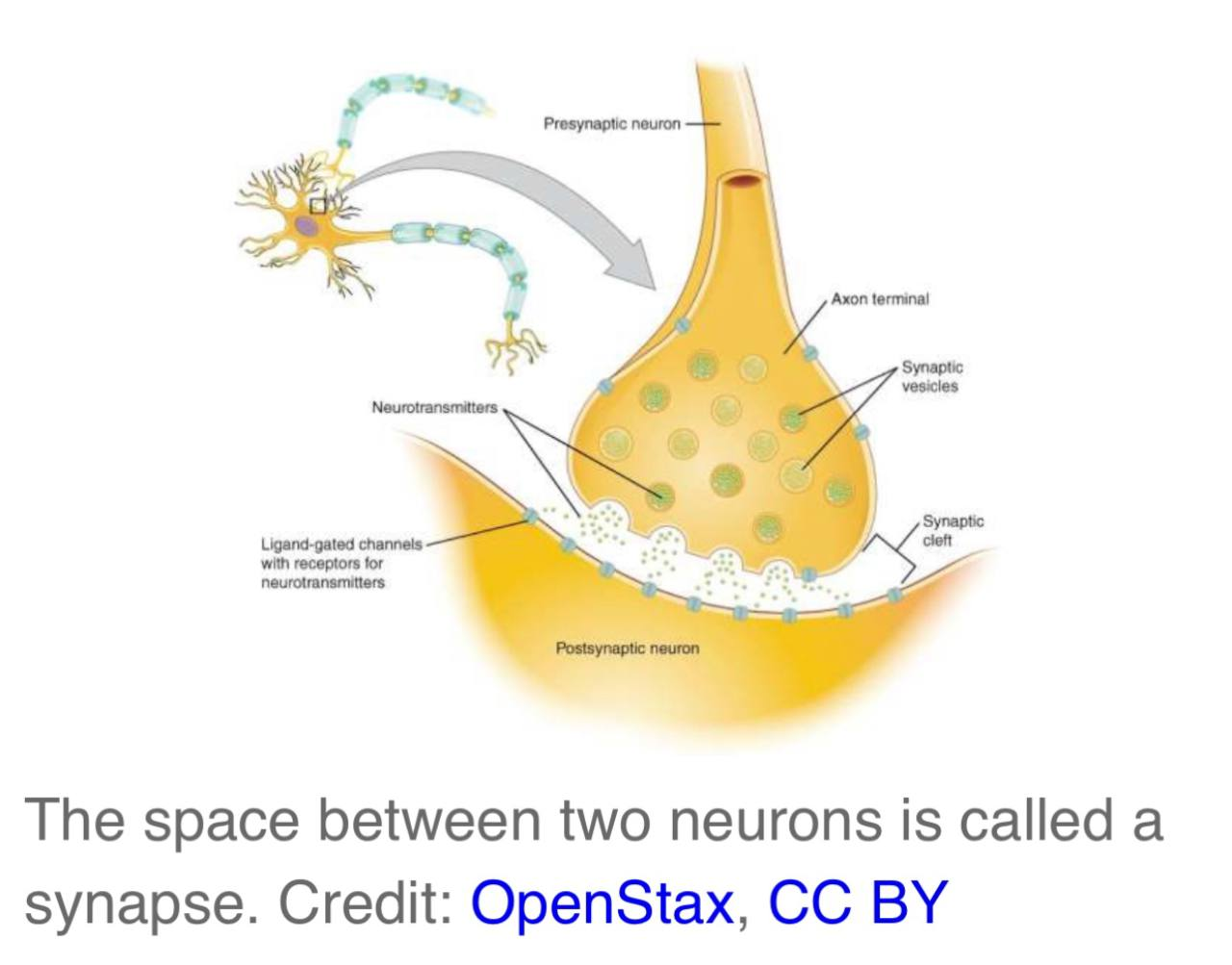 التقاطع junction بين اثنين من الخلايا العصبية، يسمى المشبك العصبي synapse، والكيمياء التي تحدث بين نقاط الاشتباك العصبي، في الفضاء المسمى الشق المشبكي synaptic cleft، هي المسؤولة عن التعلم والذاكرة.