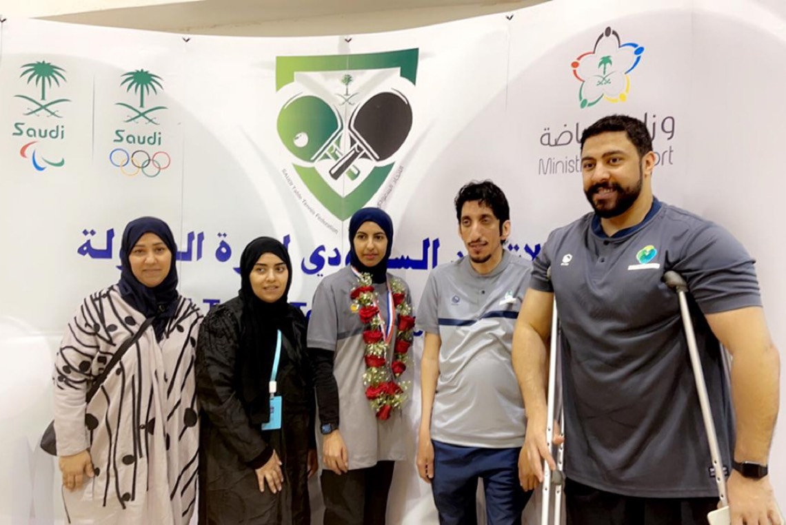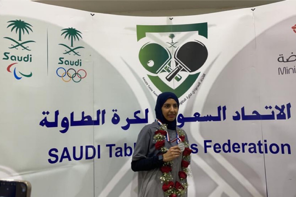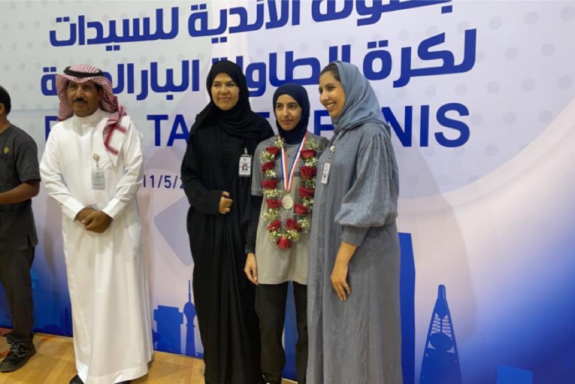 توجت اللاعبة ميعاد الجساس بالمركز الثاني في فئة «تنس من وقوف» من نادي ذوي الإعاقة بالأحساء في أول بطولة نسائية لكرة الطاولة