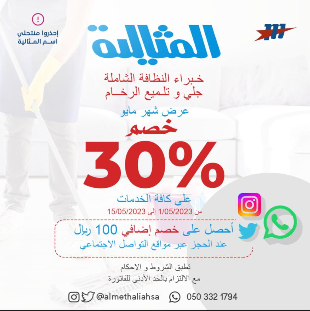 خصم 30% لدى ”شركة المثالية الدولية للنظافة“