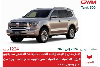 استدعت وزارة التجارة 1,224 مركبة من طراز ”Tank 500“ لموديلات عامي 2024 و 2025، وذلك إثر رصد خلل تقني في أنظمة الرؤية الخلفية قد يهدد سلامة الركاب، داعية الملاك للتحقق من مركباتهم والتواصل مع الوكيل لإجراء إصلاحات مجانية. وكشفت وزارة التجارة رسمياً عن استدعاء 1,224 مركبة من طراز ”Tank 500“ التابعة لشركة ”GWM“، والتي تشمل الموديلات الحديثة لعامي 2024 و 2025، في إطار متابعتها الدقيقة لسلامة المركبات وحماية حقوق المستهلكين. وأرجعت الوزارة... |