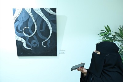 أخطبوط يرمز للخير.. قصة أغرب لوحة في معرض ”أبيض وأسود 4“