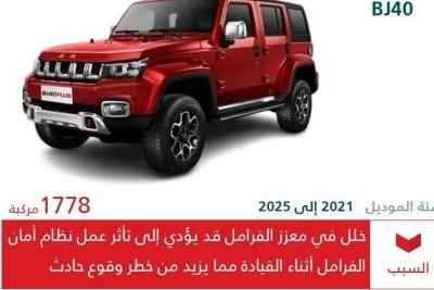 التجارة تستدعي 1778 مركبة «BAIC» لخلل في الفرامل يهدد السلامة
