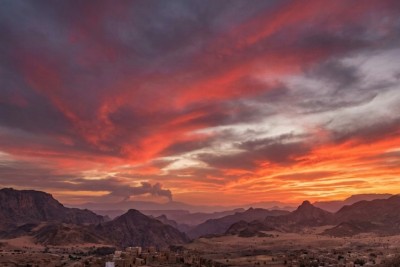 سحابة بركان إثيوبيا ترسم لوحات «غروب استثنائية» في سماء اليمن وغربي عُمان
