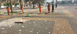 تفاعلًا مع ”جهينة“.. تنظيف بقايا الأطعمة في ميدان القلعة بالقطيف