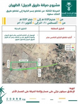 أعلن فرع وزارة النقل والخدمات اللوجستية بالمنطقة الشرقية عن إنتهاء أعمال المرحلة الثانية لإصلاح طريق الجبيل الظهران. وبينت عبر حسابها في «تويتر» أن يوم الأربعاء سيتم البدء بأعمال المرحلة الثالثة وذلك من تقاطع جسر النابية إلى تقاطع طريق الملك سعود حتى 29 صفر 1443 هـ . وأوضحت أنه سيتم إغلاق إشارة تقاطع الشارع الخامس عشر، ليكون الطريق البديل للوصول للشارع الخامس عشر شرق الدوران والعودة لطريق عمر بن الخطاب، ومن ثم النزول... |