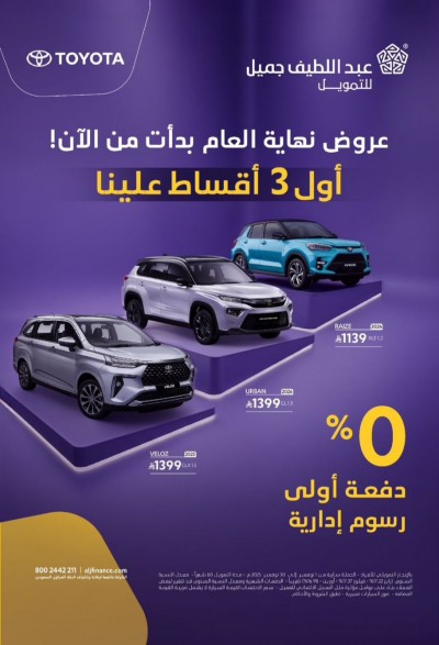عروض نهاية العام من ”عبد اللطيف جميل للتمويل“ بدأت! أول 3 أقساط علينا 0% دفعة أولى - بدون رسوم إدارية فرصة ما تتفوت! العروض جميع الفروع موقعنا: القطيف _ المجيدية _ شارع القدس... |