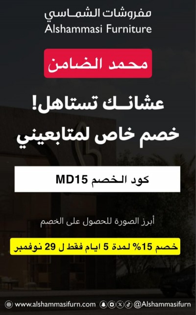 ”مفروشات الشماسي“ خبرة أكثر من 70 سنة تحصل على كوبون 1000 ريال لكل 6000 ريال في فاتورتك لزيارة موقعنا الالكتروني: Www.alshammasifurn.com الانستغرام: https://instagram.com/alshammasifurn موقع فرع القطيف: ... |