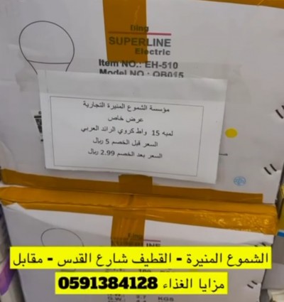 لاتفوتك خصومات ”مؤسسة الشموع المنيرة التجارية“ إنارة - ثريا - مواد صحية العرض لـ 15 ديسمبر للتواصل: 0591384128 السناب: https://snapchat.com/t/FN7xeM8i ... |