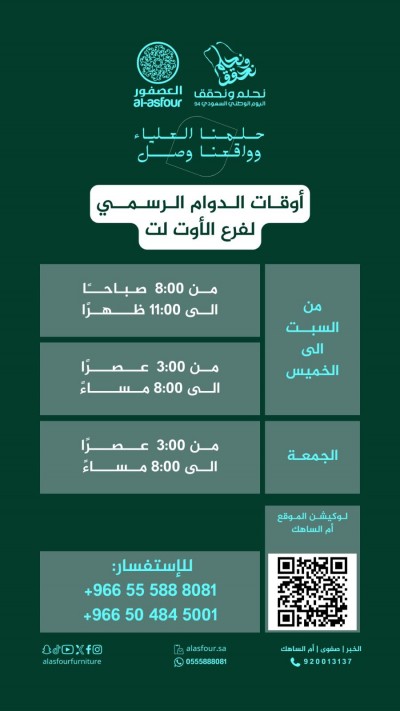 ”العصفور“ للأثاث المخفض فرع الاوتلت عروض قوية تستمر حتى نفاذ الكمية موقع أم الساهك: https://maps.google.com أوقات الدوام: من السبت إلى الخميس: من 8 صباحآ إلى 11 ظهرآ ... |