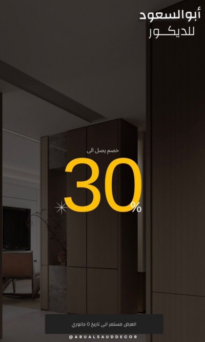 ”أبو السعود للديكور الداخلي“ يقدم عرض نهاية العام خصم يصل إلى 30% لـ 5 يناير لتنفيذ المطابخ وأعمال الديكورات الخشبية والأبواب والدرابزين الصبغ والجبس والتكييف والتصميم الداخلي الخبرة والجودة شعارنا. الإنستقرام: https://www.instagram.com/abusauddecor للتواصل: 0548082456 - 0138526916 ... |