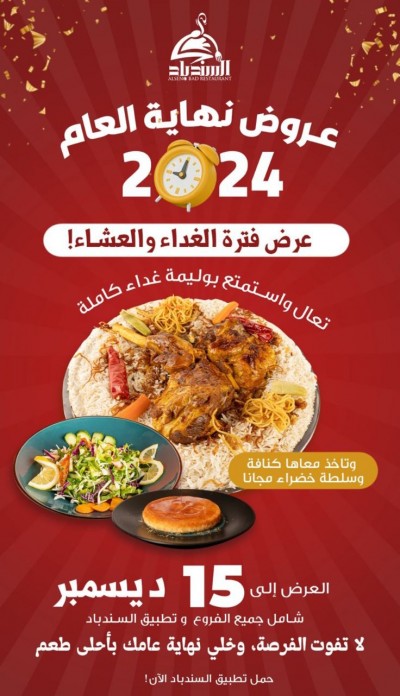 لحق على عروض ”مطعم ومطبخ السندباد“ مطعم ومطبخ السندباد دائما الأفضل وبأسعار مناسبة للجميع.. عرض نهاية العام لا يفوتك لـ 15 ديسمبر شامل جميع الفروع الانستقرام: https://www.instagram.com/alsendbad_ksa موقعنا: سيهات - شارع الخليج... |