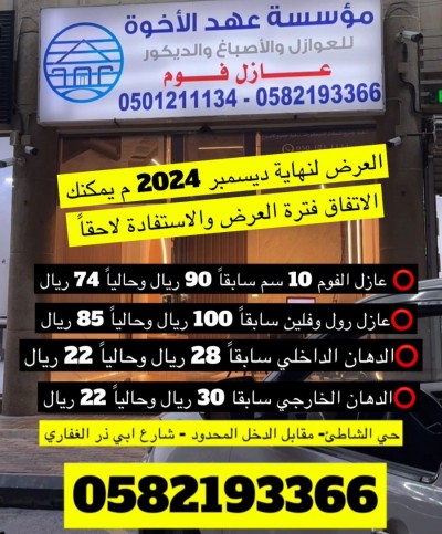 ”عهد الأخوة للمقاولات“ عوازل - ديكورات - دهانات - تكيسات ”بأجود المواد المتوفرة“ عروض لنهاية شهر ديسمبر ”أدفع الآن بوقت العرض ونفذ لاحقا“ الانستغرام: https://www.instagram.com/3ahd2000 موقعنا: حي الشاطئ - مقابل الدخل المحدود - شارع أبي ذر الغفاري... |