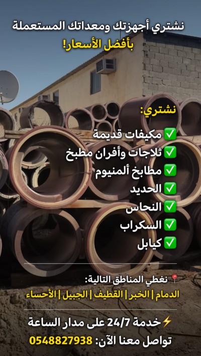 ✨ نشتري أجهزتك ومعداتك المستعملة بأفضل الأسعار! 🚚🚛 📌 نشتري: ✅ مكيفات قديمة (سبليت، شباك، مركزي) ✅ ثلاجات وأفران مطبخ ✅ مطابخ ألمنيوم ✅ جميع أنواع الحديد، النحاس، والسكراب، كيابل 📍 نغطي المناطق التالية: ... |