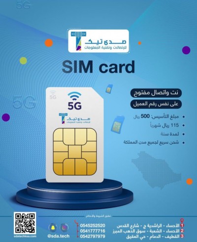 ”صدى تيك“ متجر متخصص في شرايح الإنترنت ومعتمدين من الشركات الكبرى في المملكة شركات «سوا، موبايلي، زين» نتميز في تقديم أفضل العروض على شرايح الانترنت وتقديم افضل عروض اكسسورت الجوال الأصلية ب ضمان 24 شهر عروض قوية لنهاية العام أو حتى نفاذ الكمية المتجر الالكتروني: https://sdatechksa.com فروعنا: الاحساء القطيف - عنك - شارع سلمان الفارسي... |
