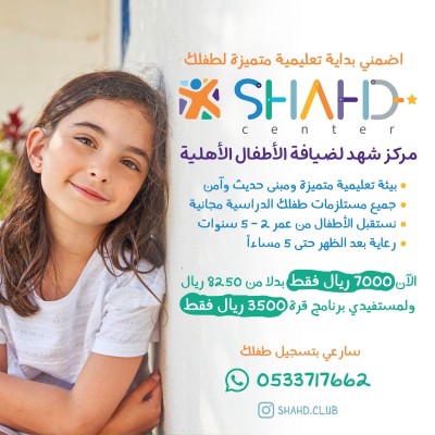 سجلي الآن واحصلي على خصم حصري في مركز شهد لضيافة الأطفال 🌟 الآن التسجيل بـ 7000 ريال فقط (بدلاً من 8250 ريال) أو 3500 ريال فقط لمستفيدي برنامج "قرة" 😍 🎁 جميع مستلزمات طفلك الدراسية مجانية طوال الفصل الدراسي! (عدا الزي الموحد). 🏫 ماذا نقدم؟ - مناهج تعليمية متميزة تناسب مراحل نمو طفلك - رعاية بعد الظهر حتى الساعة 5 مساءً ... |