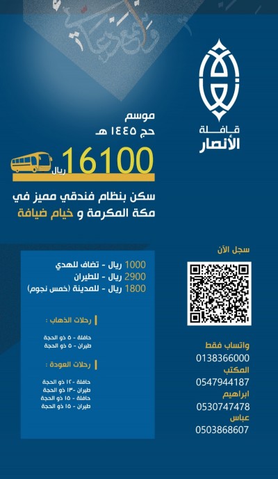 سجل الآن مع قافلة الأنصار لموسم الحج القادم 1445 / 2024 م