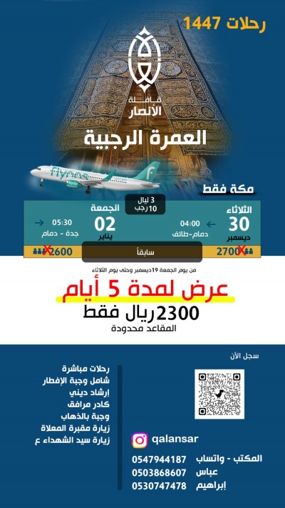 قافلة الأنصار تقدم لكم عرضها المميز لرحلة العمرة بمناسبة مولد الإمام علي (ع)..