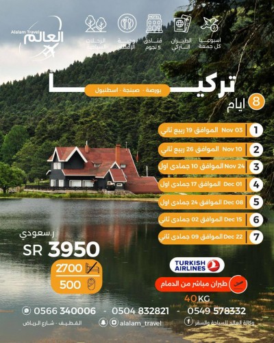 ‏🇹🇷 تركيا 8 ايام 3950 ريال