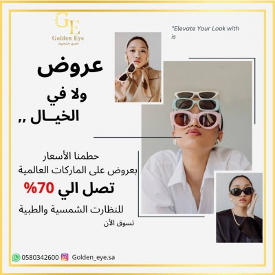 تصل إلى 70% على جميع الماركات العالمية للنظارات الشمسية والطبية