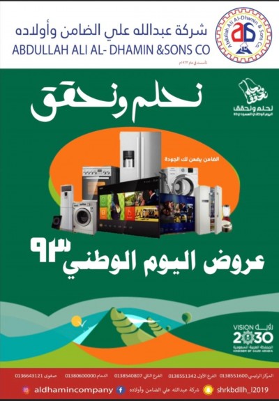 أقوى عروض اليوم الوطني لدى ”شركة عبد الله علي الضامن للأجهزة الكهربائية“ الضامن يضمن لكم الجودة.. خدماتنا: شاشات التلفاز المكيفات الثلاجات الفريزرات ... |