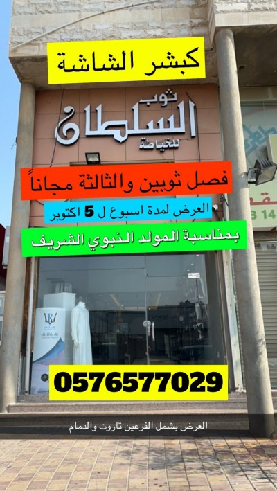 ”ثوب السلطان للخياطة“ فصل ثوبين والثالث مجانا بمناسبة المولد النبوي الشريف العرض لـ 5 أكتوبر موقعنا: تاروت - الدمام... |