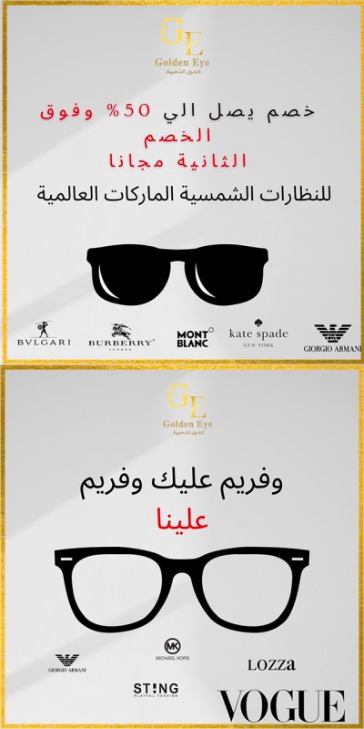 نظارة عليك ونظارة علينا لماركات مختارة من النظارات الشمسية والطبية 🕶️ 👓 وعروض تصل الي 50% للماركات العالمية قوتشي / شوبارد / بربري / لاكوست / تومي والكثير ✨ خدمة ما بعد البيع ✨ خدمة اصلاح النظارات للماركات العالمية 📍الموقع: ... |