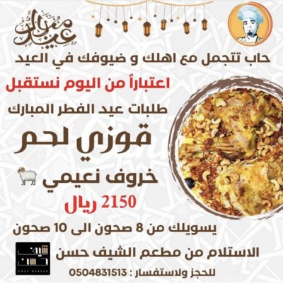 - اعتبارًا من اليوم نستقبل طلبات الولائم لعيد الفطر المبارك