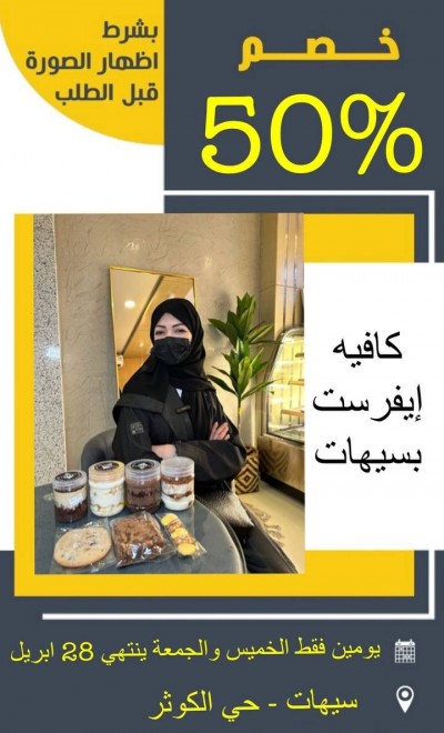 خصم 50% لمدة يومين على كل شي ما عدا مشروبات القهوة لدى ”إيفريست كافيه everest coffee“