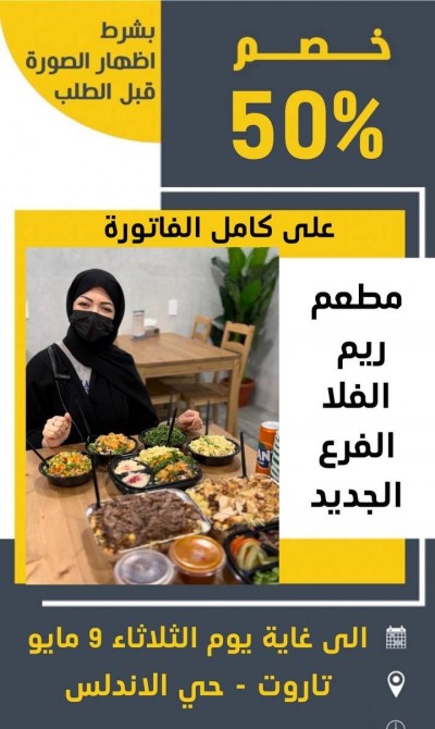 خصم 50% على كامل الفاتورة افتتاح فرع ”ريم الفلا“