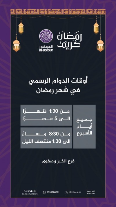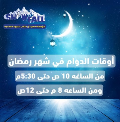 عروض التوفير الحقيقية لدى ”مؤسسة سعيد ال طالب“ أوقات الدوام في شهر رمضان: من العاشرة صباحا إلى الخامسة والنصف عصرا ومن الثامنة مساء إلى الثانية عشر مساء الانستغرام: ... |
