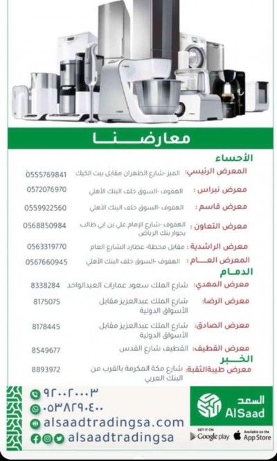 ”شركة السعد للتجارة“ الأجهزة الكهربائية والإلكترونية وأجهزة التبريد والتكييف ووكالات تجارية تحت سقف واحد. الانستغرام: https://www.instagram.com/alsaadtradingsa السناب شات: موقعنا: ... |