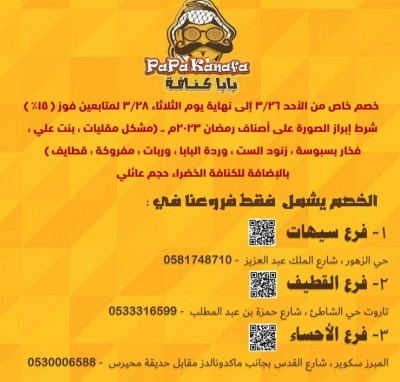 خصم 15% لدى ”بابا كنافة“ لمدة يومين