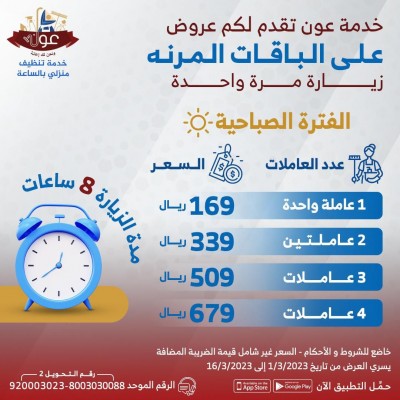 ”خدمة عون“ تقدم لكم عروض على الباقات المرنة للفترة الصباحية والمسائية